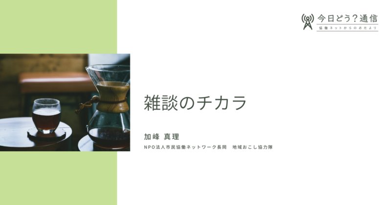 雑談とは、答えを見つけるための会話ではなく、心が呼吸を取り戻すための時間なのだと思います。今日もどこかで、誰かが雑談をしています。